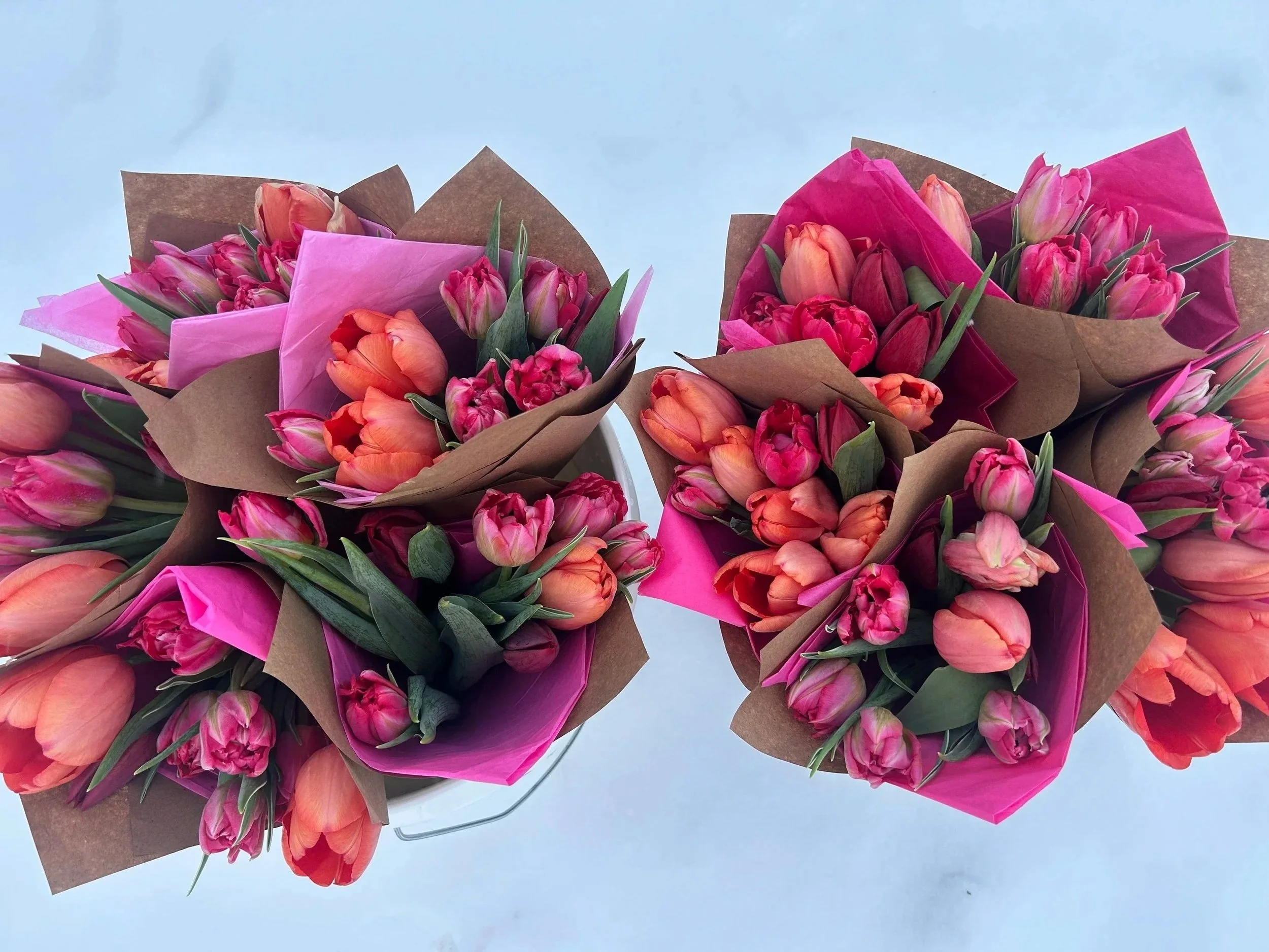 Saturday mornings slinging our fresh bouquets at our local market while sipping on an iced coffee - perfection!