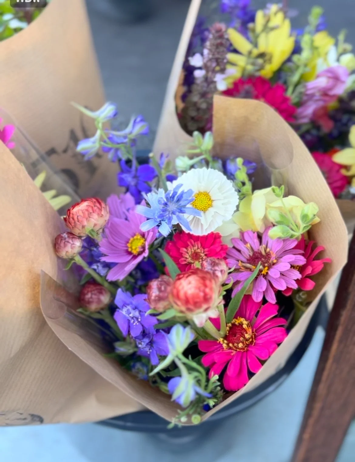 Saturday mornings slinging our fresh bouquets at our local market while sipping on an iced coffee - perfection! Stay tuned for 2026 Farmer’s Market locations and dates.